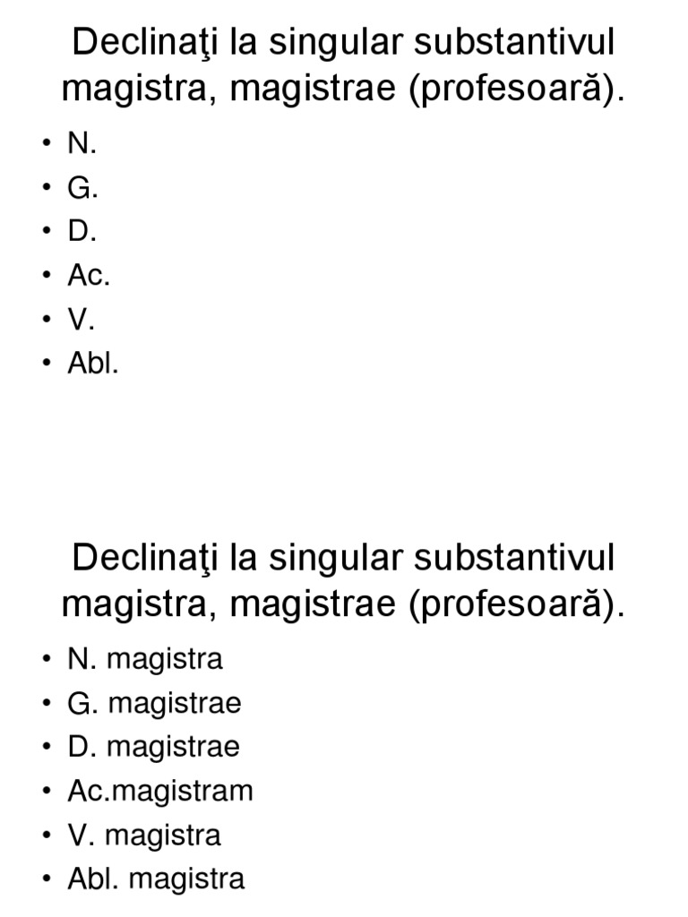 Nu poţi să mai interacţionezi. This article lists direct english translations of common latin phrases. Așa ar trebui să fi! In limba latina exista patru conjugari, mostenite si in limba romana. Stări ale obiectelor (mașina stă în parcare), posesia unui obiect de către alt obiect (vasile are o carte.